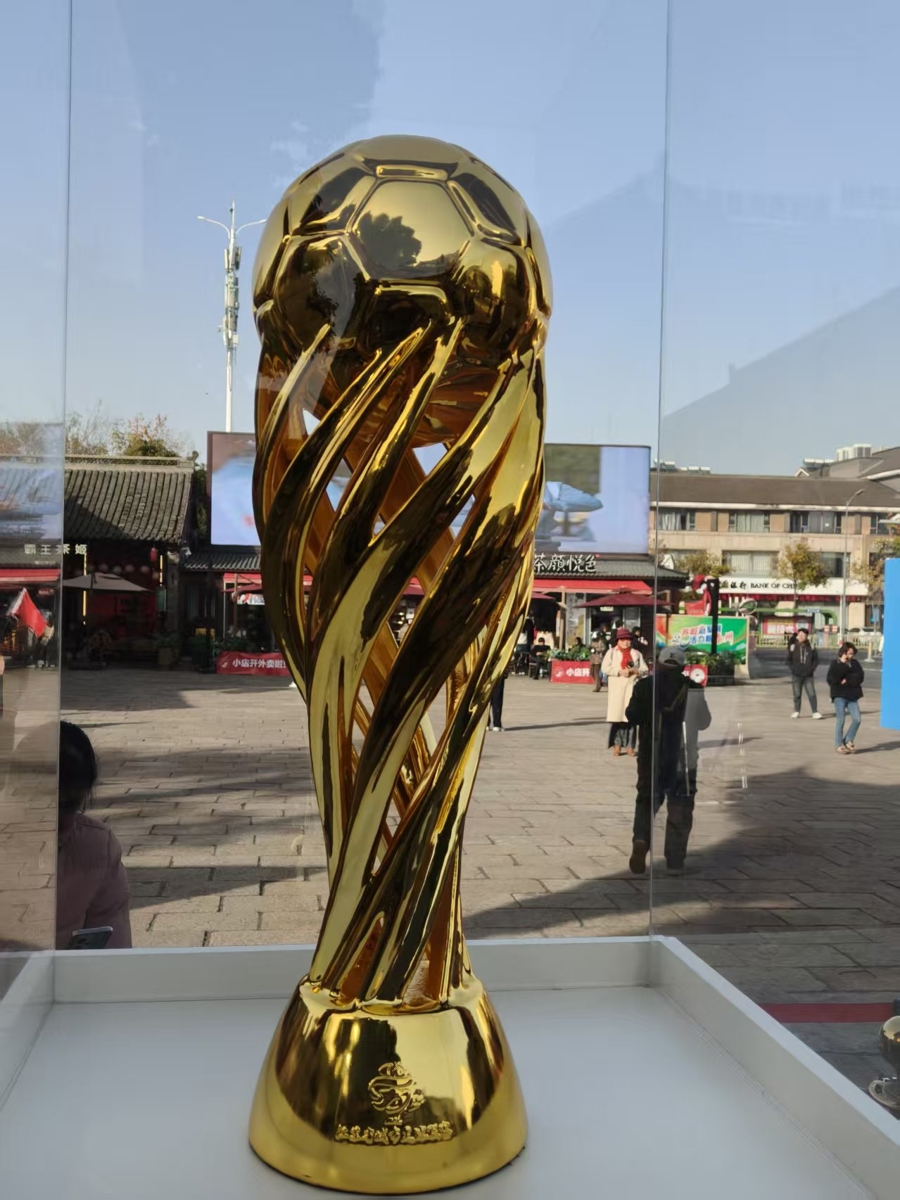 从11月底开始,苏超冠军奖杯就在泰州市政府广场、泰州老街、海军舰艇文化园等处开启全城巡展。每次展出,金灿灿的奖杯总会被市民层层包围。在泰州万达广场的巡展现场,60岁的市民罗国林举着手机久久不愿离去,他的感慨道出了全民心声:“这奖杯比金子还珍贵,从一开始的都不被看好到最后夺冠,这个奖杯是我们泰州人拼出来的骄傲。”